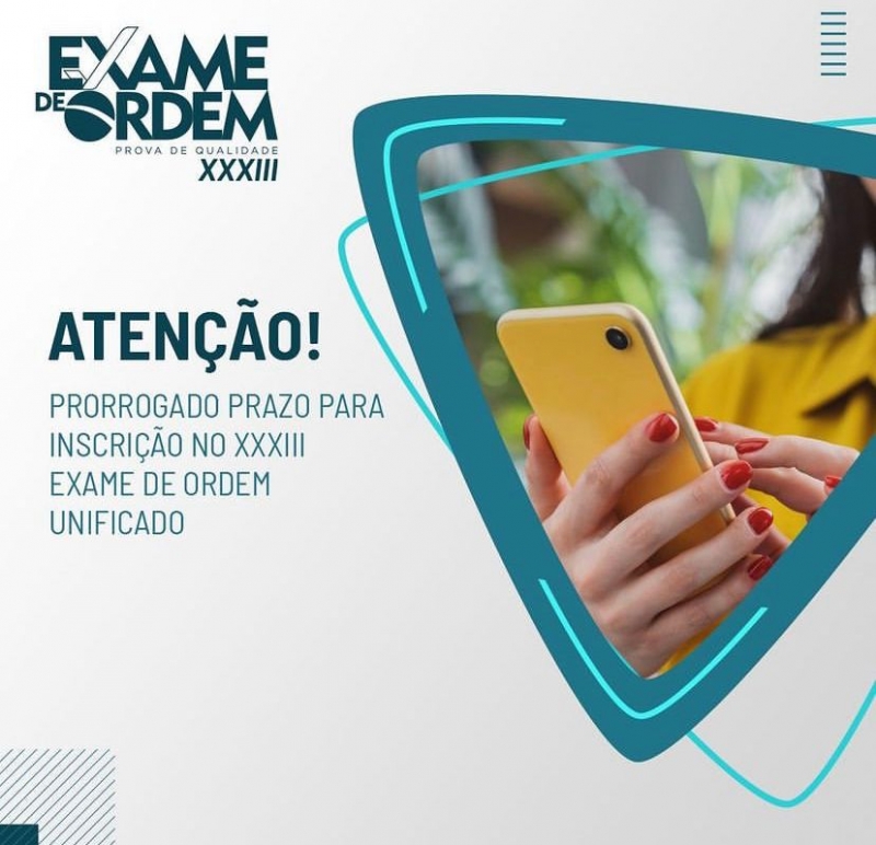 A OAB Nacional, por meio da Coordenação Nacional do Exame de Ordem Unificado, prorrogou, nesta quinta-feira (19), o prazo para a inscrição para o XXXIII Exame de Ordem Unificado (EOU). Os examinandos terão até o próximo sábado (21), às 17h (horário de Brasília) para se inscrever. O último dia para pagamento da taxa de inscrição é no dia 27 de setembro de 2021