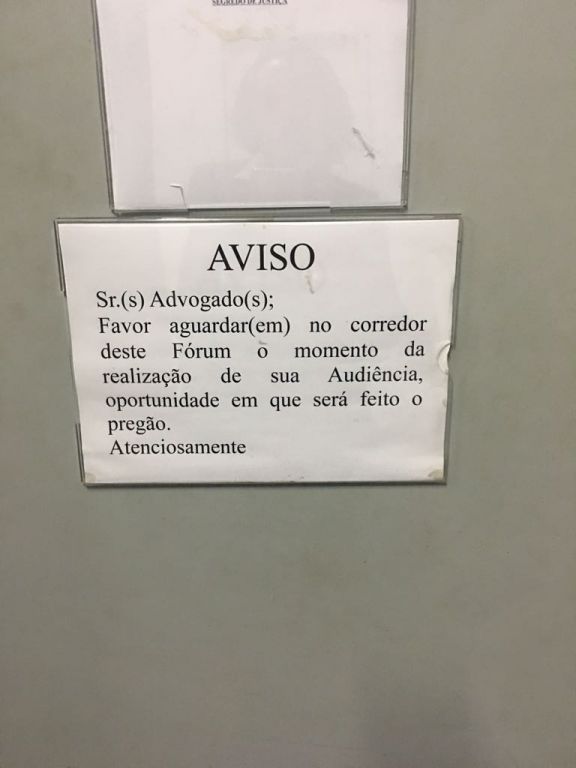 Após a inauguração da ampliação da Sala de Apoio da Advocacia no Fórum Criminal da Serra, uma comitida de advogados, liderada pelo presidente da OAB-ES, Homero Mafra e do presidente da 17a Subseção da Serra, Ítalo Scaramussa, foi até a sala de audiências onde atua o juiz da 4a Vara Criminal para pedir que fosse retirado um cartaz com o seguinte aviso: "Senhores Advogados: Favor aguardar no corredor deste Fórum o momento da realização de sua audiência,oportunidade em que será feito o pregão. Atenciosamente." O juiz garantiu que o cartaz será retirado.