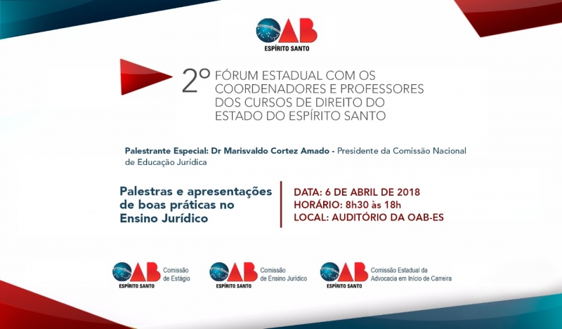 O evento gratuito acontece das 8h30 às 18h, no auditório da Seccional, e é organizado pelas Comissões de Ensino Jurídico e de Estágio da OAB-ES, com a participação da Comissão Estadual da Advocacia em Início de Carreira (CEAIC). Pela manhã, o presidente da Comissão Nacional de Educação Jurídica, Marisvaldo Cortez Amado, fará uma palestra.