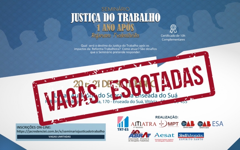 Seminário Justiça do Trabalho reúne esta semana palestrantes nacionais mas vagas já estão esgotadas