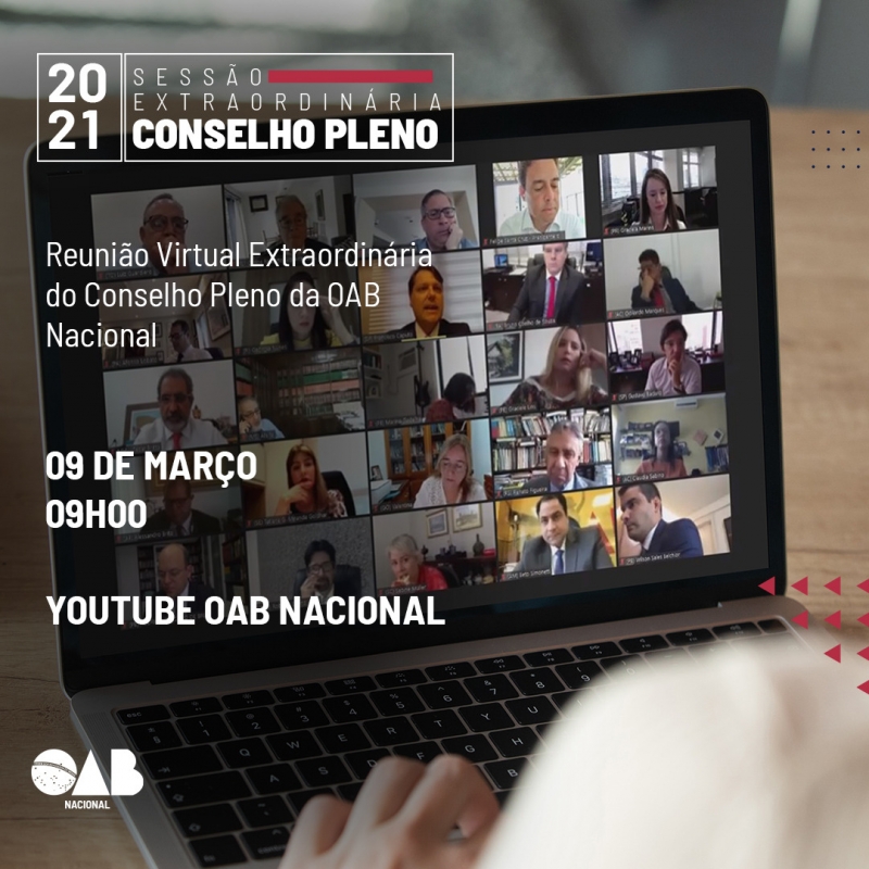 A diretoria da OAB Nacional convocou sessão virtual extraordinária do Conselho Pleno para amanhã, terça-feira (09/03), a partir da 9 horas, para debater duas proposições para auxiliar na prevenção, contenção e no combate à pandemia de coronavírus.