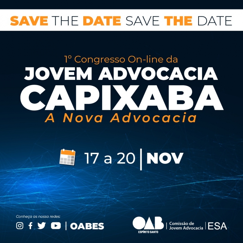 “O Congresso on-line da Jovem Advocacia Capixaba já tem data marcada e acontecerá nos dias 17 a 20 de novembro. "O evento será importante para a aproximação da Jovem Advocacia junto à Ordem e, principalmente nesse período de pandemia, onde toda a classe precisou se adaptar e modernizar sua atuação, será uma oportunidade de a Advocacia ter acesso a conteúdo atual e de grande relevância, compartilhado por profissionais gabaritados. A programação está imperdível e o que mais chama atenção é a variedade de temas que serão abordados. Entre eles estão a Advocacia Extrajudicial, Marketing Jurídico, Direito Homoafetivo, Prática Trabalhista, entre outros", explicou coordenadora do projeto e membro da OAB Jovem, Tainá Coutinho.