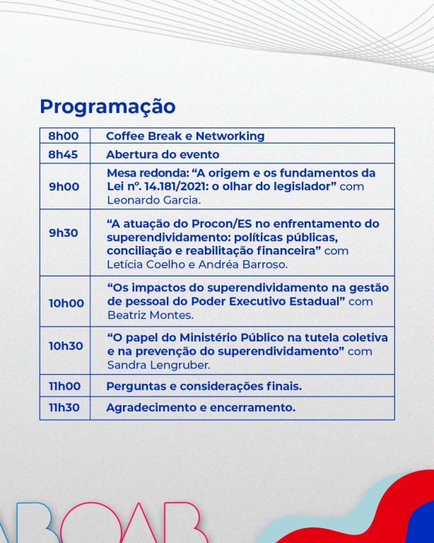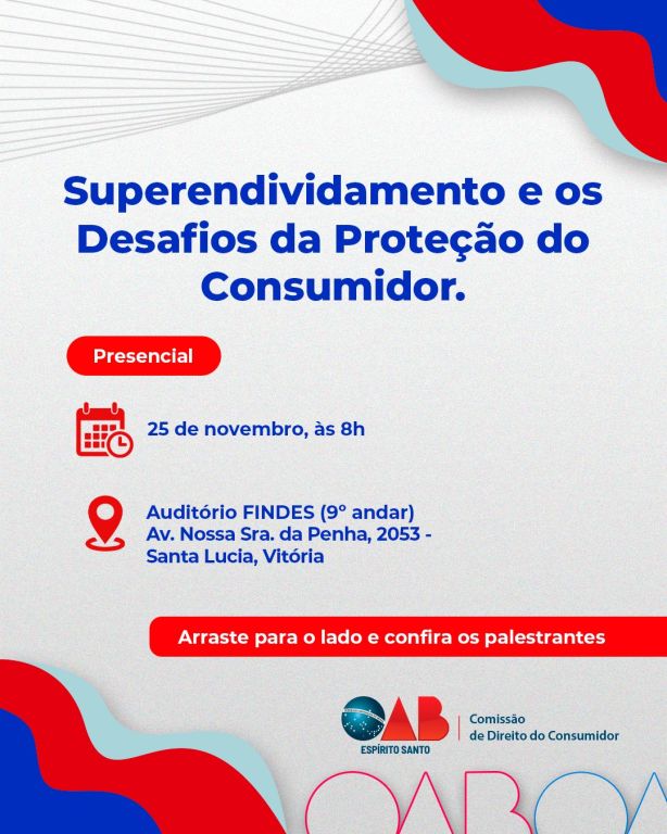 Eventos PresenciaisSuperendividamento e os Desafios da Proteção do Consumidor25 de Novembro de 2025. 08h00 mode_editFaça sua inscrição