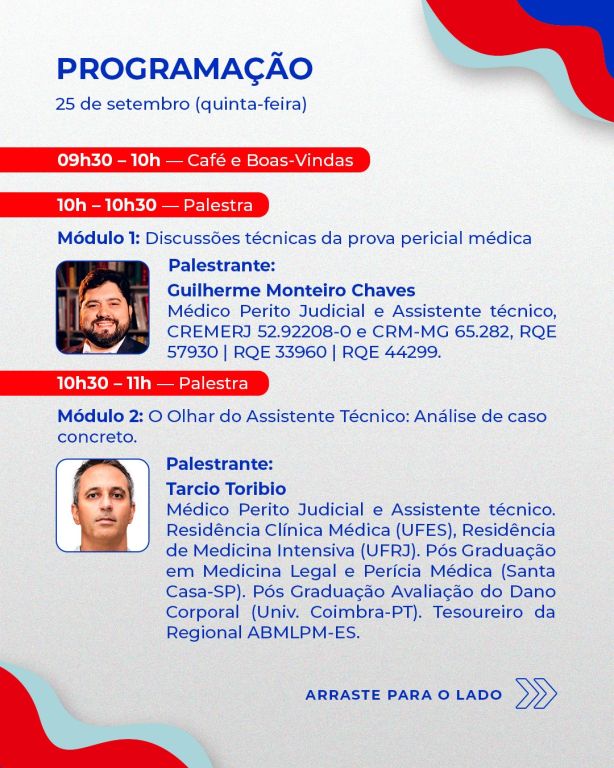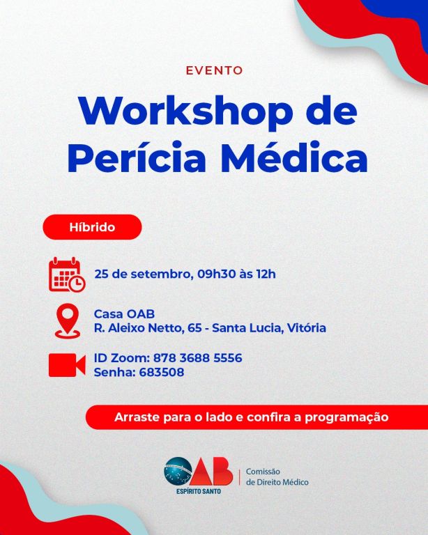Eventos PresenciaisWorkshop de Perícia Médica25 de Setembro de 2025. 09h30 mode_editFaça sua inscrição
