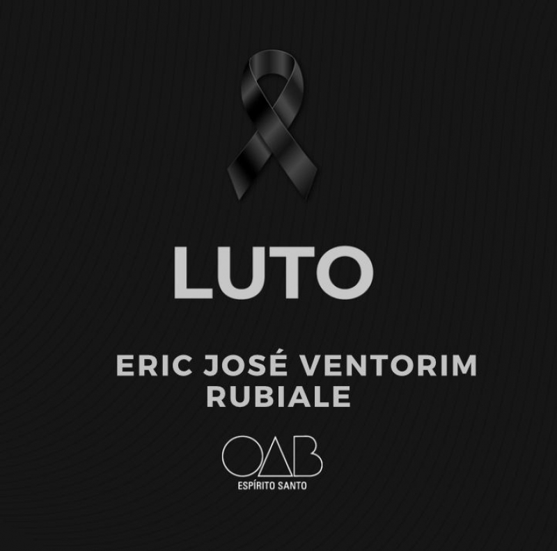 A Ordem dos Advogados do Brasil - Seccional Espírito Santo (OAB-ES) recebeu com imenso pesar a notícia do falecimento, nesta terça-feira (01/08), do advogado criminalista Eric José Ventorim Rubiale.