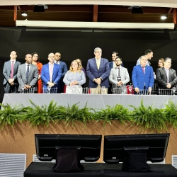 Participaram da solenidade de abertura oficial o presidente da Seccional Espírito Santo, José Carlos Rizk Filho; o tesoureiro da OAB-ES, Anderson Ferreira Félis; o diretor-geral da ESA-ES, Lauro Coimbra; a presidente da 12ª Subseção de São Mateus, Lívia Batista Barcelos; o conselheiro da OAB-ES, Patrick de Oliveira Malverdi, dentre outras autoridades.