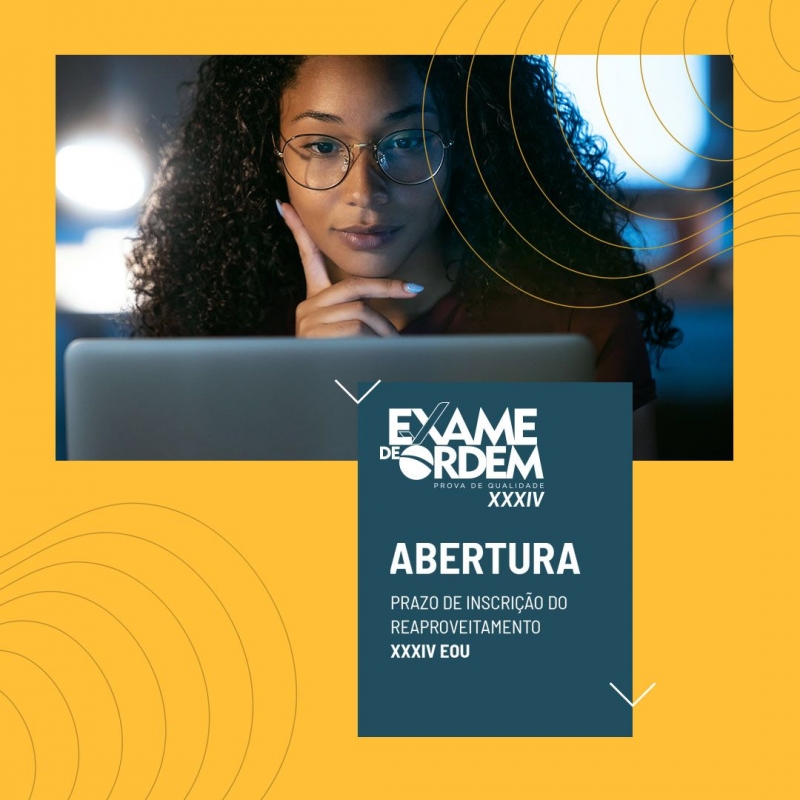 A OAB Nacional, por meio da Coordenação Nacional do Exame de Ordem Unificado, e a Fundação Getúlio Vargas, informa que abriu o prazo para o pedido de reaproveitamento da 1ª fase do XXXIII Exame de Ordem Unificado (EOU), que se encerrará às 17h do dia 11 de fevereiro. O edital complementar com informações sobre a abertura do prazo foi publicado no último dia 28 de janeiro.