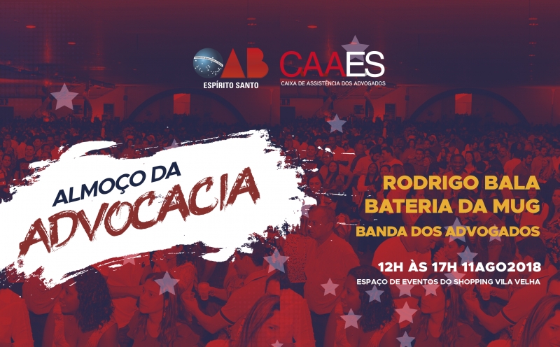 Almoço da advocacia, no sábado (11), será ao som de Rodrigo Bala, Bateria da MUG e Banda dos Advogados