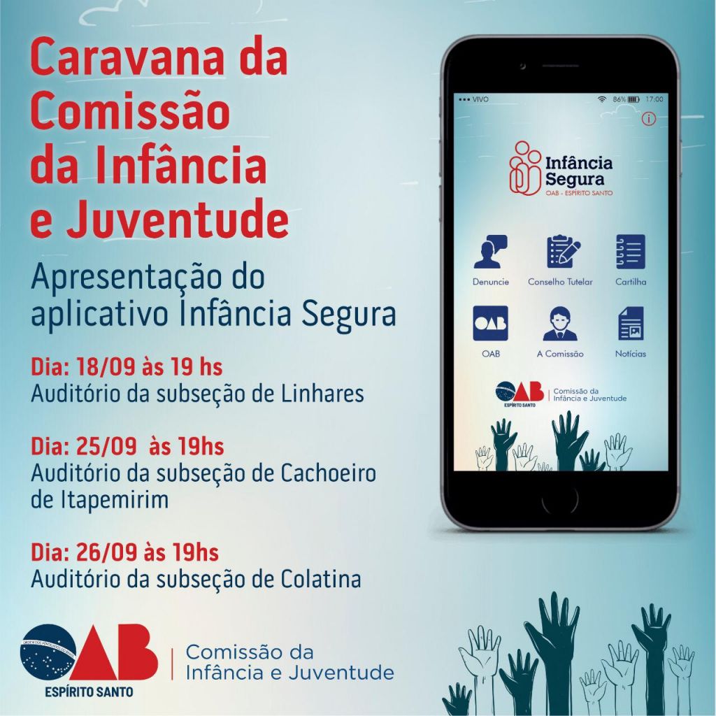Outras duas datas estão disponíveis para a apresentação do aplicativo. Nos dias 25 e 26 de setembro a Comissão de Infância e Juventude irá falar sobre o mecanismo criado as subeções de Cachoeiro de Itapemirim e de Colatina.