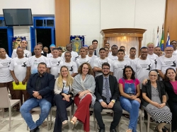 Participaram do evento a presidente da CDH, Manoela Soares, e os membros Fabio Marçal e Jacimar Bom-Fim. O coral da PSC se apresentou com 28 internos, que cantaram vários hinos durante a celebração, encantando a todos que assistiam.