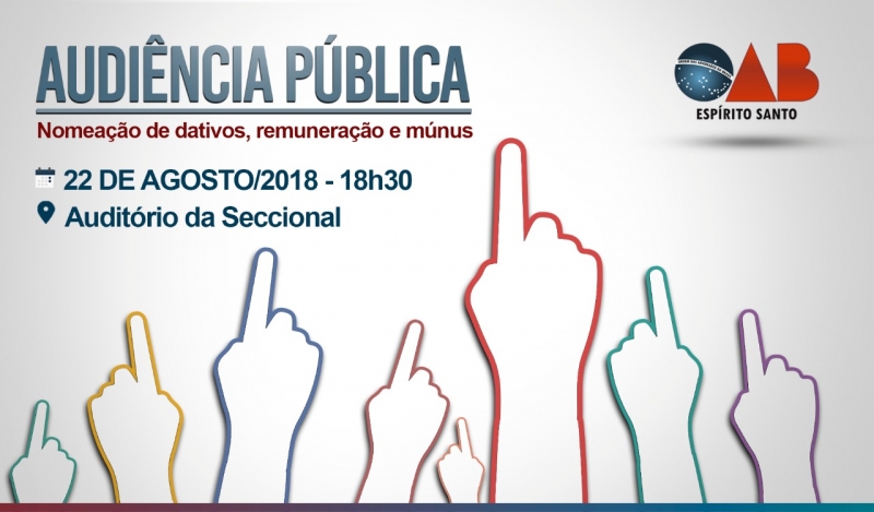 A advocacia está convidada para participar da audiência pública que acontece no auditório da Ordem dos Advogados do Brasil – Seccional Espírito Santo (OAB-ES) na próxima quarta-feira, dia 22, às 18h30, no centro de Vitória.