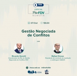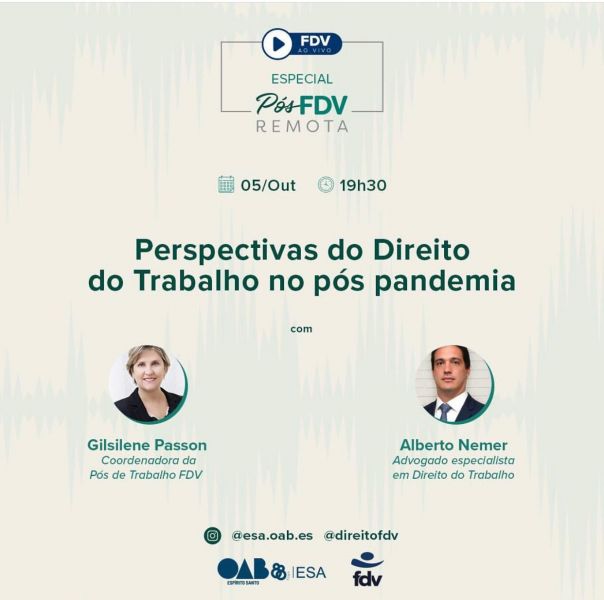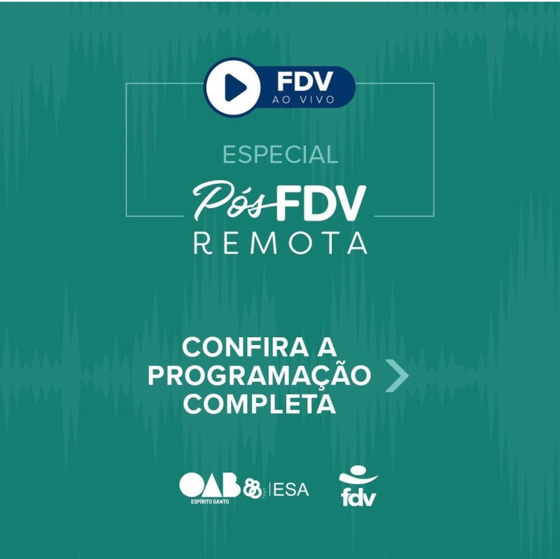 Pensando nisso, a FDV e a ESA/OAB-ES programaram para a próxima semana, do dia 05 a 09 de outubro, uma semana de lives FDV ao Vivo especial.