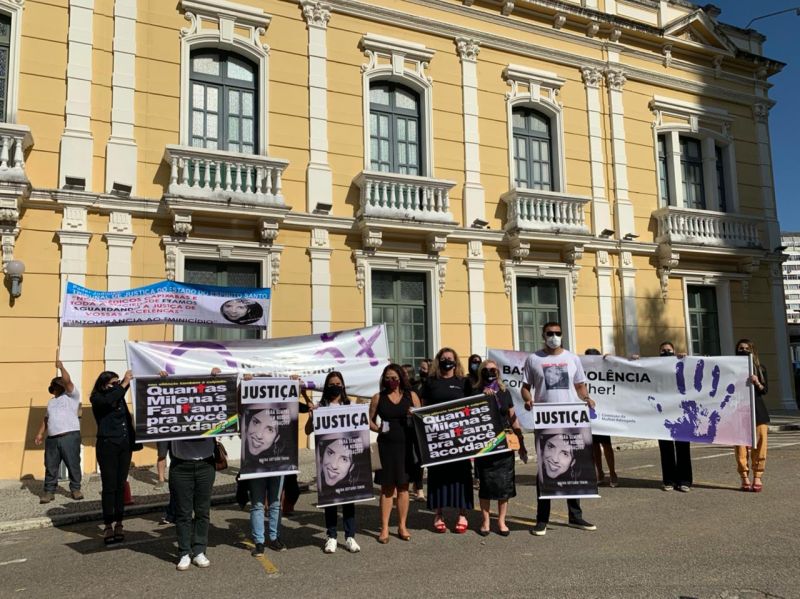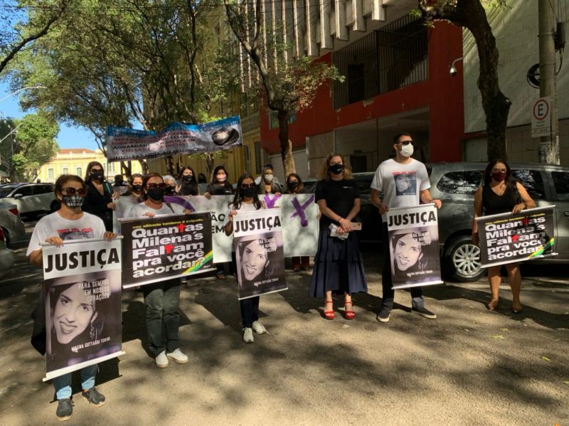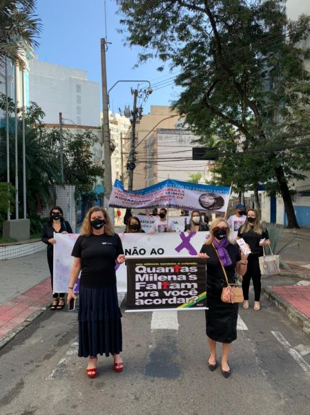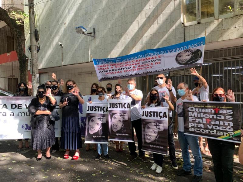 Com várias faixas nas mãos, elas realizaram um ato em volta do Fórum e também pararam em frente ao Palácio Anchieta, pedido justiça pelo feminicídio de Milena e um basta à violência contra as mulheres. Acompanhando as advogadas estavam, também, familiares da médica.