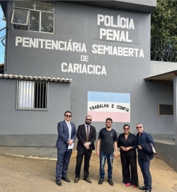 Em seguida, a Comissão esteve na Penitenciária Semiaberta de Cariacica (PSC - Tucum) e foi recebida pelo diretor Pablo Pereira de Souza que apresentou as novas instalações do parlatório e as obras inerentes à construção de uma sala de audiências que beneficiará toda a advocacia.