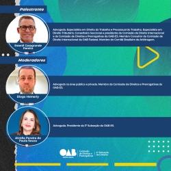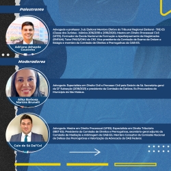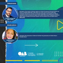 Nesta quinta-feira (6/10), o evento acontecerá na 3ª Subseção de Linhares, a partir das 18h. A primeira palestra será apresentada pelo advogado e procurador do Estado, Rodrigo Marques de Abreu Júdice. A moderação será feita pela advogada Weslane Brito Guerino.