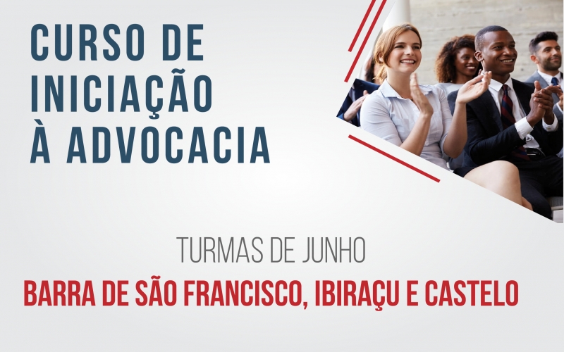 A Comissão Estadual da Advocacia em Início de Carreira (CEAIC) da Ordem dos Advogados do Brasil - Seção Espírito Santo (OAB-ES) já está com inscrições abertas para os cursos de junho, nas subseções de Barra de São Francisco, Ibiraçu e Castelo. Mas ainda dá tempo de participar das turmas de maio em Cachoeiro de Itapemirim e Vila Velha, respectivamente nos próximos dias 12 e 26.