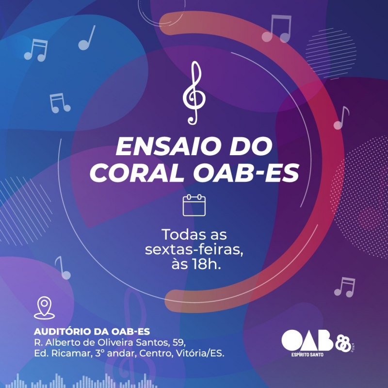 O Coral da OAB-ES, grupo formado por advogados e colaboradores e reconhecido até por federações europeias, voltará a ensaiar após meses sem atividades e apresentações por conta da pandemia. Os ensaios acontecerão toda sexta-feira, a partir das 18 horas, no auditório da sede da OAB.