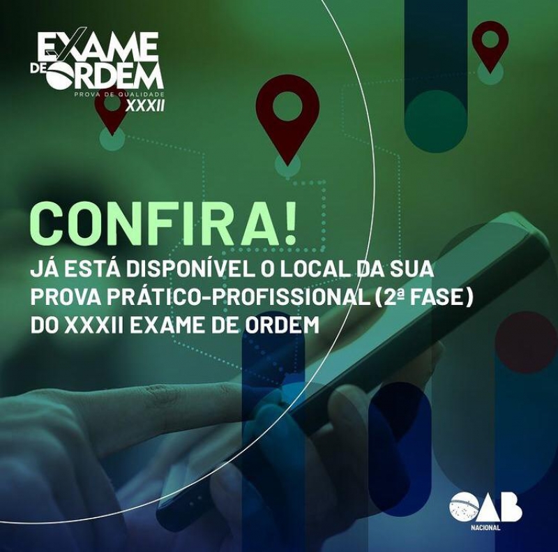 A OAB Nacional, por meio da Coordenação Nacional do Exame de Ordem Unificado, divulgou, nesta terça-feira (3), os locais da prova da 2ª fase (prático- profissional) do XXXII Exame de Ordem Unificado (EOU). O exame será aplicado no próximo domingo, dia 8 de agosto deste ano, das 13h às 18h (horário de Brasília).