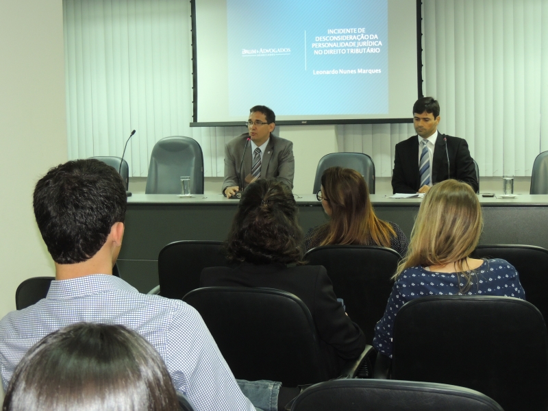 Os palestrantes da primeira noite de curso foram o diretor do departamento de direito tributário da ESA e presidente da Comissão de Direito Tributário da OAB-ES, Leonardo Nunes Marques e o procurador do município de Vitória, Eduardo Casseb Lois.