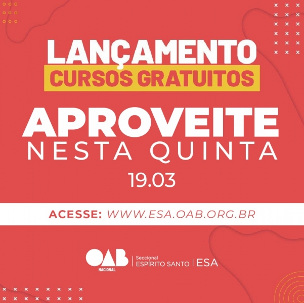 Buscando tornar mais produtivo os dias de reclusão devido a pandemia do coronavírua (Covit-19), a ESA Nacional em parceria com a ESA/ES lançou uma oferta de cursos gratuitos online em diversas áreas do Direito, respectivamente.