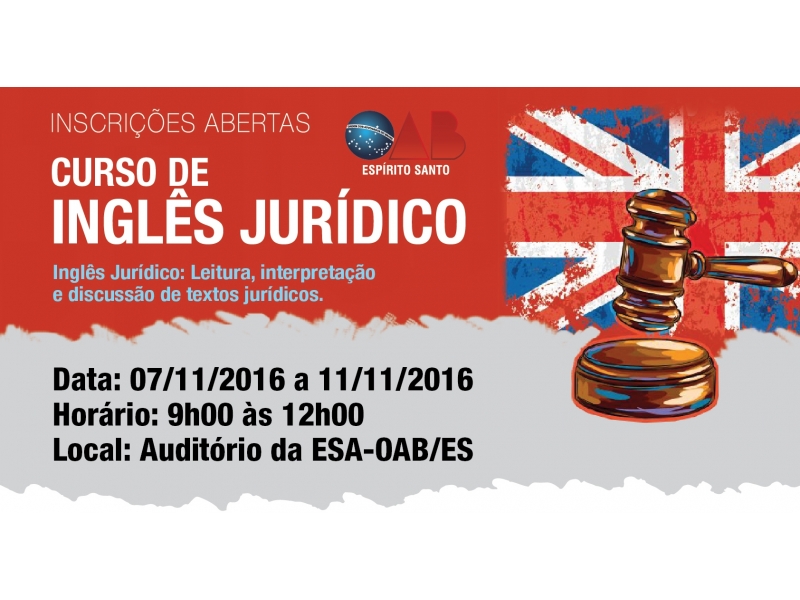 A leitura, interpretação e discussão de textos jurídicos em inglês serão objeto de estudo durante o curso organizado pela ESA/OAB-ES de 07 a 11 de novembro em aula presencial na sede da Escola. O objetivo é fazer com que os advogados compreendam melhor a linguagem jurídica utilizada no idioma. FAÇA SUA INSCRIÇÃO ONLINE