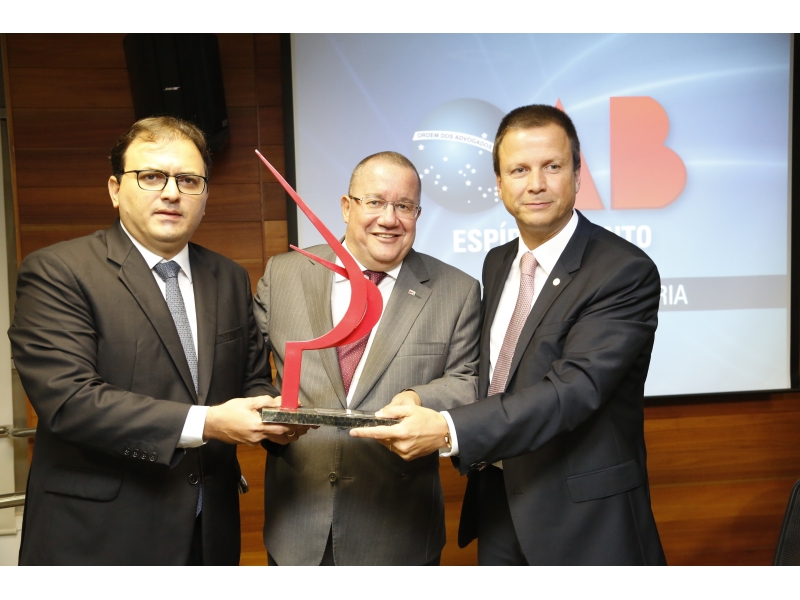O presidente da OAB-ES, Homero Junger Mafra, foi homenageado pelo presidente do Conselho Federal, Marcus Vinicius Furtado Coêlho, e pelo vice-presidente, Cláudio Lamachia, com o Troféu Raymundo Faoro de mérito à advocacia. A entrega do troféu foi feita durante a cerimônia de posse da nova diretoria da Seccional, nesta sexta-feira (22).
