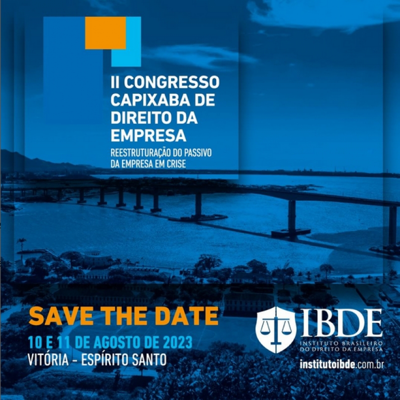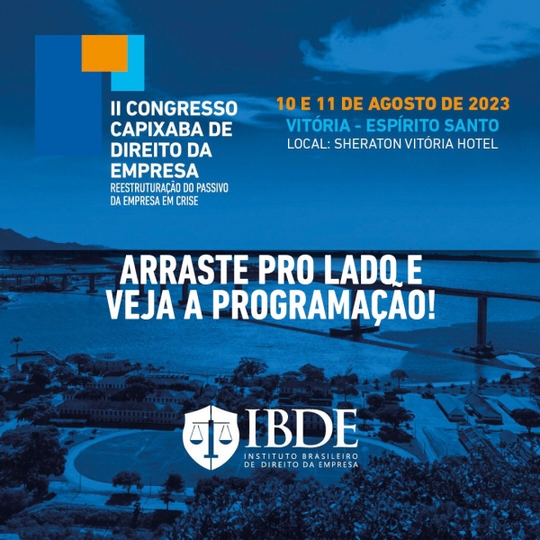 O evento é uma realização do Instituto Brasileiro de Direito da Empresa - IBDE e tem o apoio da OAB-ES. Serão debatidos temas relevantes como a reestruturação do passivo da empresa em crise, societário, direito digital, direito penal da empresa, dentre outros.
