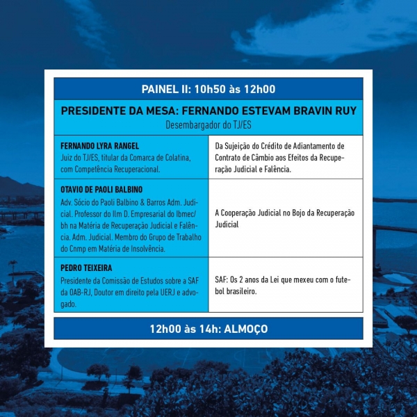 “Essa parceria entre a OAB-ES e o IBDE na realização desse evento é um exemplo de cooperação entre instituições, visando a promoção do conhecimento, atualização profissional e a consolidação de um ambiente empresarial saudável e inovador no Espírito Santo”, disse ainda.