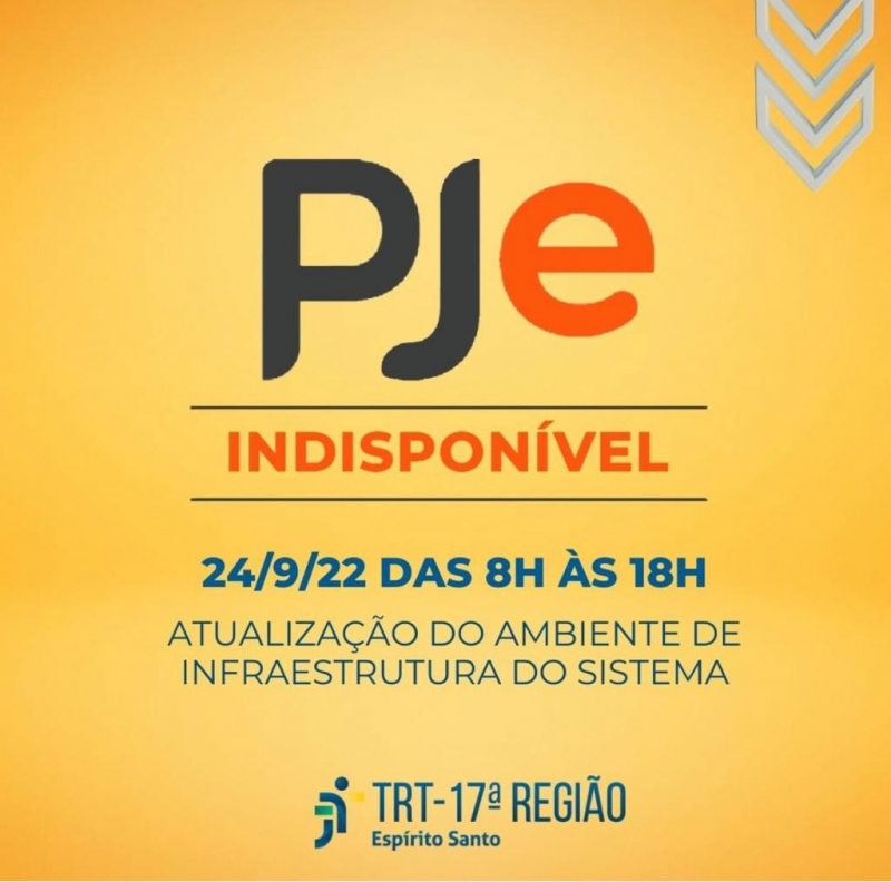 Indisponibilidade do PJe no próximo sábado, 24/09