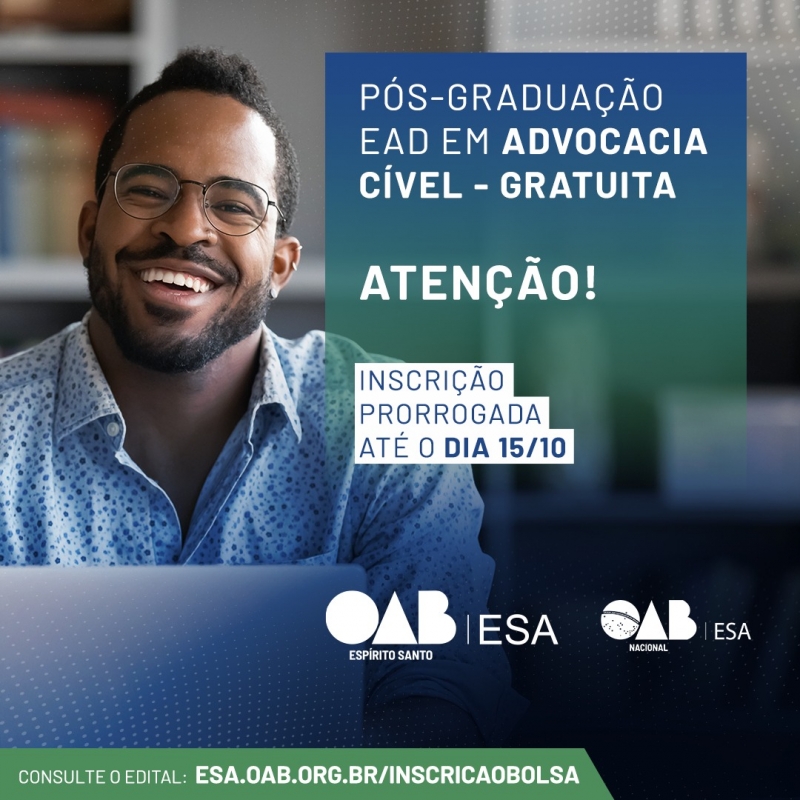 E atenção: estão sendo distribuídas 500 bolsas gratuitas que serão repartidas, proporcionalmente, para as 19 Subseções da OAB-ES.