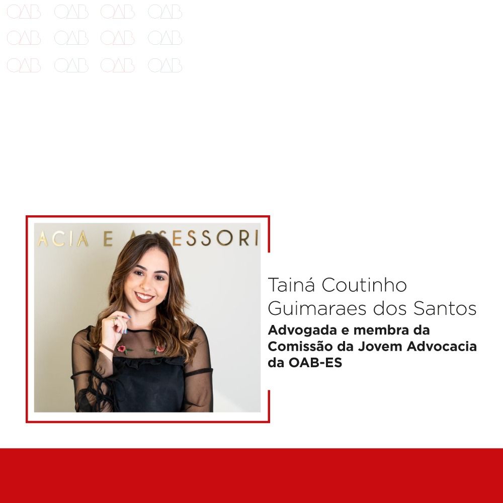 Entre os convidados está o advogado e Diretor-presidente da Escola Superior de Advocacia (ESA-ES), Alexandre Zamprogno. Também integrará a live a advogada nas áreas do Direito de Família e Sucessões e do Direito Digital e também secretária adjunta da Comissão da Jovem Advocacia, Tainá Coutinho Guimaraes dos Santos.