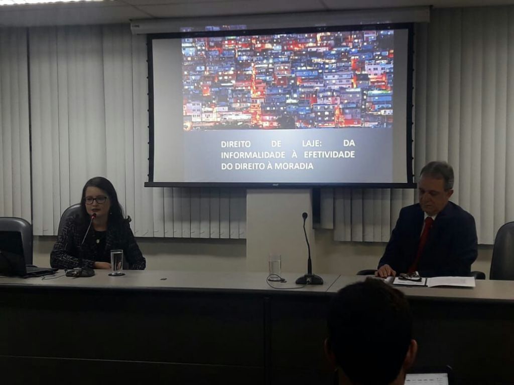 Leila Imbroisi mostrou os conceitos atuais e se concentrou na legislação recente que trata do direito de laje, um tema que gera muitas divergências e controvérsias no mundo jurídico. Segundo ela, “há muita divergência doutrinária no que tange a natureza jurídica do direito de laje, porém, o mais importante é a proteção jurídica que foi dada a esta situações de insegurança jurídica e de regulação de fenômenos sociais que existiam e as pessoas não tinham segurança jurídica não podendo exercer a sua tutela petitória, não podendo exercer o direito de sucessão, e agora, com o direito real de laje estão salvaguardadas”, garantiu.