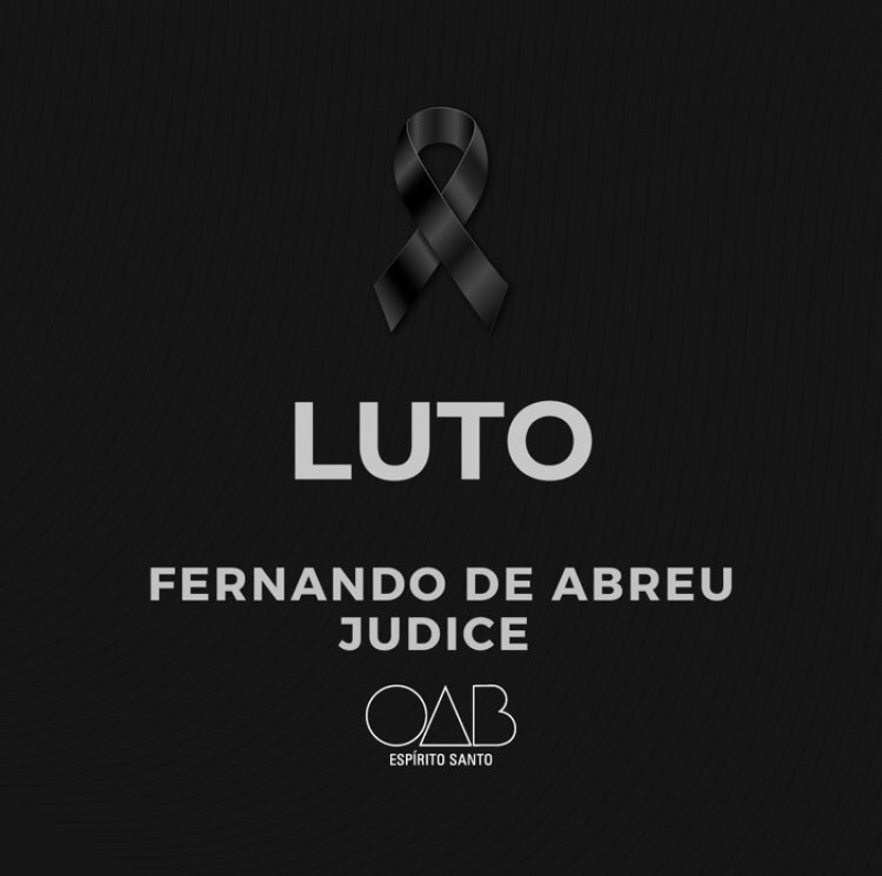 A Ordem dos Advogados do Brasil - Seccional Espírito Santo (OAB-ES) recebeu, com imenso pesar, o falecimento do advogado Fernando de Abreu Judice, na madrugada deste sábado (23/10).