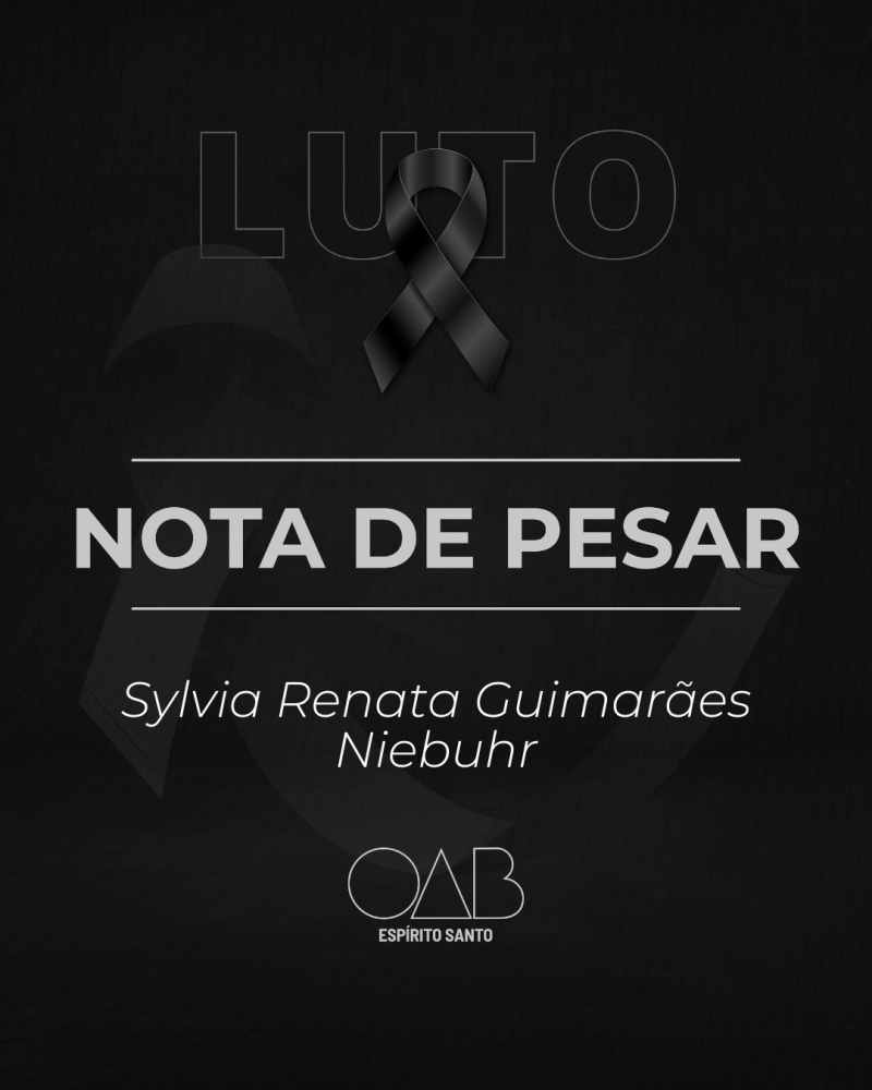 Com profundo pesar, a Ordem dos Advogados do Brasil – Seccional do Espírito Santo (OAB-ES) lamenta o falecimento da advogada criminalista Dra. Sylvia Renata Guimarães Niebuhr. Neste momento de imensa dor, a OAB-ES se solidariza com familiares, amigos e colegas de profissão, expressando os mais sinceros sentimentos e desejando força para superar essa perda irreparável.