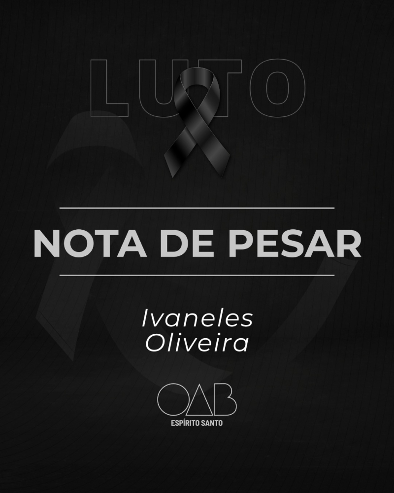 É com imenso pesar que a Ordem dos Advogados do Brasil - Seccional Espírito Santo (OAB-ES) recebeu a notícia do falecimento do advogado Ivaneles Oliveira nesta terça-feira (28/01).