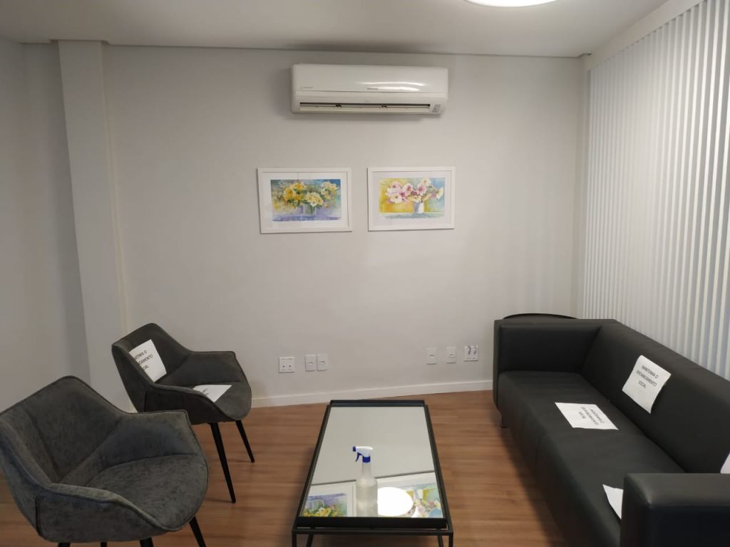 A sala toda climatizada possui uma estrutura completa contando com duas recepções com atendente, dois escritórios, sala de atendimento, três mesas redondas para reuniões ou para aguardo de atendimento ou audiências.