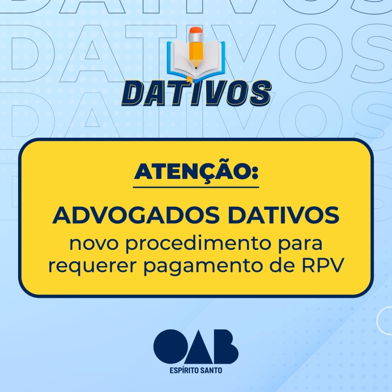 Novo procedimento está garantido mais agilidade para requerer pagamento de RPV (requisição de pequeno valor) dos advogados capixabas que atuam como dativos. A conquista é resultado do diálogo entre a Ordem dos Advogados do Brasil - Seccional Espírito Santo (OAB-ES) e a Procuradoria-Geral do Estado (PGE).