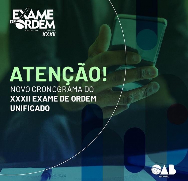 A OAB Nacional, por intermédio da Coordenação Nacional do Exame de Ordem Unificado, estabeleceu nesta sexta-feira (30) um novo cronograma para o XXXII Exame de Ordem Unificado, cujo edital foi retificado por aditivo publicado na presente data.