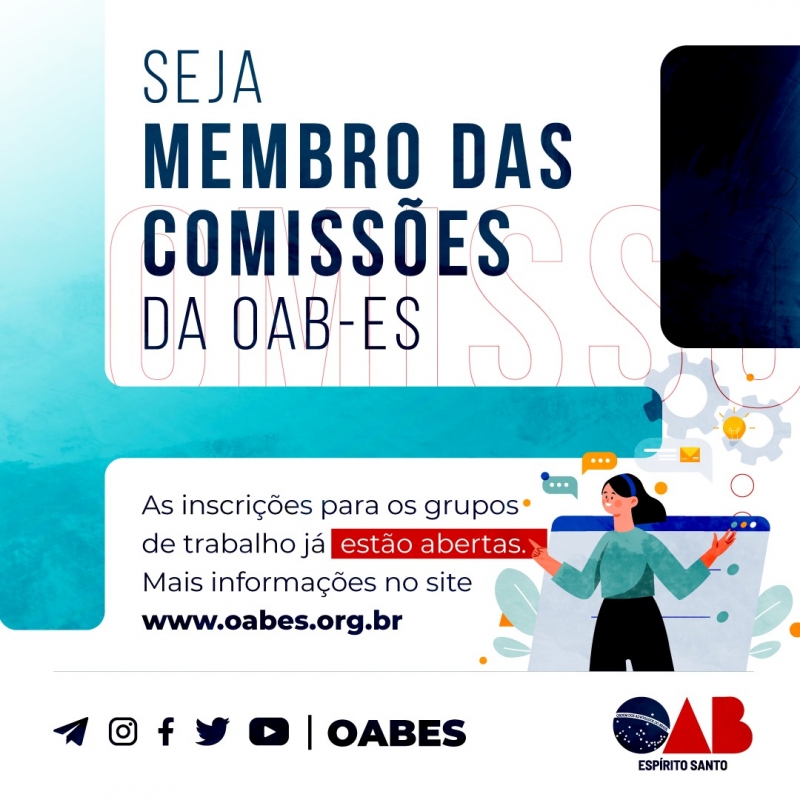 Desde o início da atual gestão, a OAB-ES vem promovendo a democratização da advocacia com a atuação das comissões, dando, assim, transparência às atividades. As comissões atuam em prol da advocacia, na defesa dos direitos sociais e na garantia do Estado Democrático de Direito.