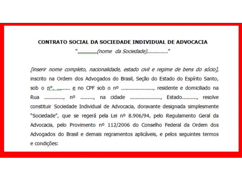 A Ordem dos Advogados do Brasil – Seção Espírito Santo (OAB-ES) criou uma minuta de contrato social para auxiliar os advogados na instituição de sociedade individual, assim como uma minuta de alteração e consolidação do contrato social de sociedade.