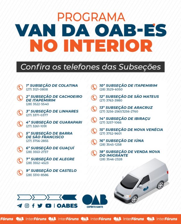 O serviço de van da OAB-ES é mais uma iniciativa da Ordem de valorização da advocacia do interior e busca oferecer melhores condições para o exercício profissional, garantindo assim, mais conforto e segurança.