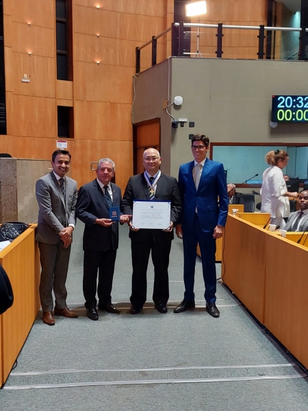 O deputado estadual, Mazinho dos Anjos, também entregou a Comenda Domingos Martins, no grau de Oficial, ao ministro Sebastião Reis Júnior, do Superior Tribunal de Justiça (STJ); e ao conselheiro do Conselho Nacional de Justiça (CNJ), Richard Pae Kim.