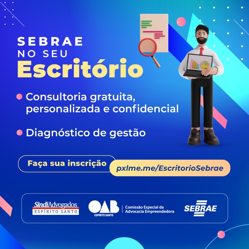 A Ordem dos Advogados do Brasil, Seccional Espírito Santo (OAB-ES), por meio da Comissão Especial da Advocacia Empreendedora, está apoiando o projeto “Sebrae no seu Escritório”, uma iniciativa do Sebrae-ES, com o apoio do Sindicato dos Advogados do Espírito Santo (Sindiadvogados).