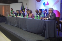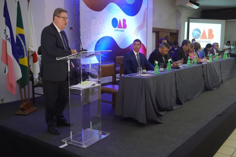 “Queria lhes dizer que o Sistema OAB se coloca à disposição de todos vocês. Nós realmente lutamos em prol da nossa classe e da cidadania. Tivemos, nos últimos três anos, uma luta muito simbólica, que foi contra a extinção de fóruns no Espírito Santo, onde tivemos que falar o óbvio, que não se fecham fóruns, se abrem tribunais. Que uma Casa de Leis que foi extinta na ditadura não pode homenagear gente que praticava a tortura, e não é questão de colocar em A, B ou C, de direita ou de esquerda, é questão de humanidade. E aqui, gostaria de parabenizar o discurso da oradora, que mesmo jovem não se esqueceu do que ocorreu no Brasil há uns anos, e eu sou prova viva, pois tive um pai torturado e preso pela ditadura. É preciso que a gente se lembre para se esquecer de homenagear quem não merece nossas homenagens. E aqui eu defendo uma veia apartidária, mas não omissa, que respeita às autoridades, mas não conivente. Parabéns a todos e a todas que ingressam na carreira da advocacia. Os clientes de vocês não serão apenas aqueles em seus escritórios, serão a democracia, os direitos humanos, a liberdade de expressão que não rima com crime. Vivemos um momento onde se acha que praticar crime é liberdade de expressão, e vocês na qualidade de cientistas do Direito saberão diferenciar o que é fake news criminosa do que é liberdade de expressão. Esse é um dever de casa contínuo. E queria dizer que o primeiro defensor das prerrogativas de vocês, são vocês mesmos. Não abaixem a cabeça para autoridade nenhuma, a advocacia não é profissão de covarde, e não é possível que nenhuma autoridade nos intimide”.