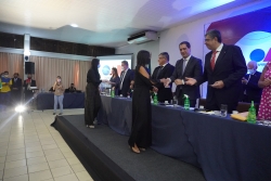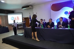 Em seguida, a palavra foi passada para a oradora da turma, Vitória Defens Cabral, que primeiro fez os devidos cumprimentos à mesa e, posteriormente, um belo discurso, dizendo, entre outras coisas, da caminhada difícil de todos para estarem recebendo, naquele momento, a Carteira da Ordem. “Foram anos de estudo e dedicação e hoje estamos aqui realizando um sonho, um mérito não só nosso, mas de todas as pessoas que estiveram conosco nos apoiando”, disse. E continuou, a advocacia é uma das mais antigas profissões existentes e uma das mais nobres, fazemos um lindo papel de aplicação correta das leis e dos Direitos previstos na Constituição, defendendo os princípios de vida social. Hoje, estamos tendo a oportunidade não só de ter em mãos a nossa almejada Carteira, mas também de exercer essa função nobre de servir à sociedade e o próximo, que nos exigirá muita responsabilidade e, principalmente, ética, tendo sempre a justiça como compasso”.