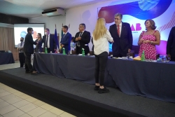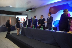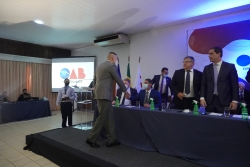 Nesta sexta-feira (01/04), a Ordem dos Advogados do Brasil, Seccional Espírito Santo (OAB-ES), através de seu presidente José Carlos Rizk Filho, realizou mais uma solenidade de entrega de Carteiras para 118 bacharéis em Direito. A mesa contou com a presença, ainda, da vice-presidente, Anabela Galvão; do secretário-geral, Alberto Nemer Neto; da secretária-geral adjunta, Silvia Lameira Hansen; e do tesoureiro, Anderson Félis. E também do presidente da Caixa de Assistências aos Advogados (CAAES), Ben-Hur Farina; do advogado Gustavo Varella Cabral, que foi paraninfo da turma; entre outras autoridades.