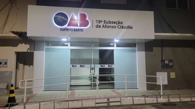 O presidente da OAB do Espírito Santo, José Carlos Rizk Filho, e o presidente da 19º Subseção, Gustavo Guimarães entregaram a nova sede para a advocacia dos municípios de Afonso Cláudio, Laranja da Terra, Serra Pelada (Distrito de Afonso Cláudio) e Sobreiro (Distrito de Laranja da Terra). A 19ª Subseção foi criada em 2021 e é uma das mais novas do Estado.