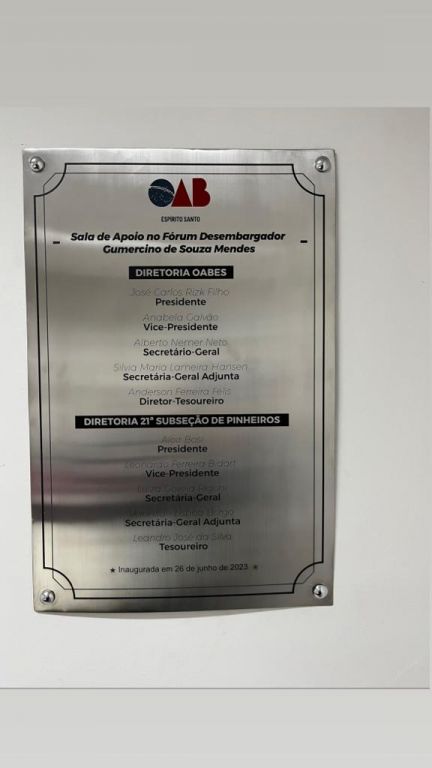 “A inauguração da sala de apoio ao advogado na Comarca de Mucurici atende uma demanda antiga, uma espera de mais de 20 anos. Com o apoio e por consideração aos advogados, o Dr Helton gentilmente separou e cedeu um espaço para advocacia. Agradeço ao Dr Helton por essa sensibilidade para com os advogados, ao Dr Rizk pelo apoio, ao Dr Anderson por estar aqui hoje em nome da OAB para que juntos inaugurarmos esta sala. Hoje cumprimos uma, outras ainda virão. Obrigado por estarem aqui neste dia especial para a advocacia da Comarca de Mucurici”, disse o presidente da 21 ª Subseção de Pinheiro, Aloir Bosi.