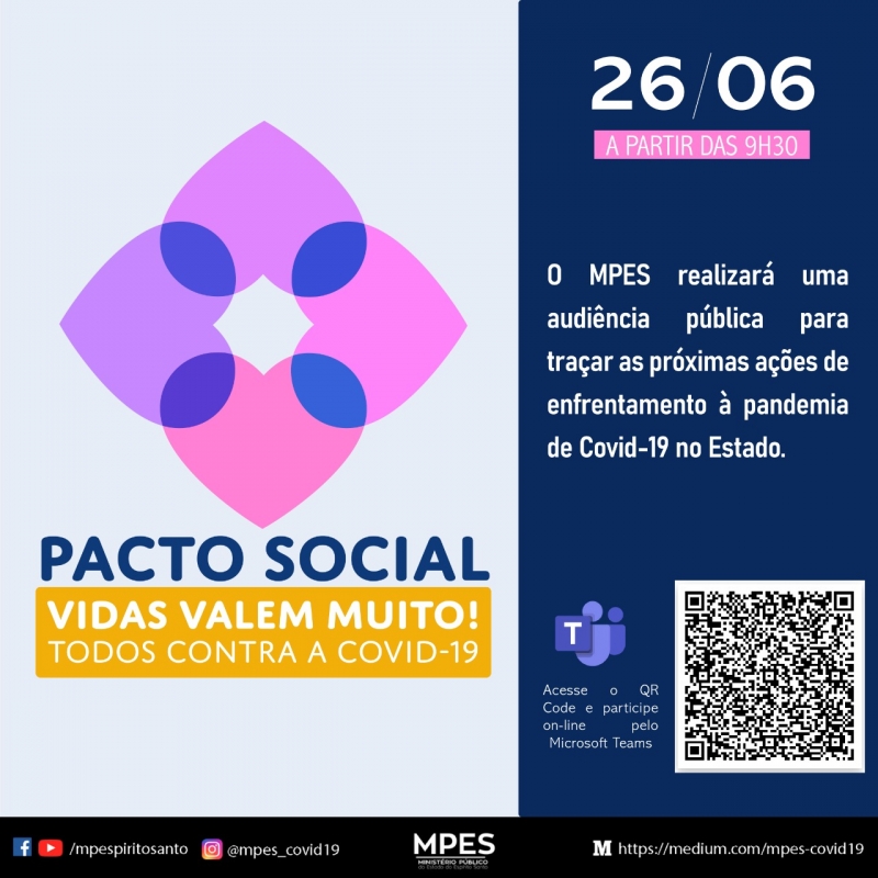 O “Pacto pela Vida”, liderado pelo MPES, nasce em razão desse momento adverso para a humanidade, que é a pandemia pela Covid-19, acarretando um altíssimo número de pessoas contaminadas e mortas no Espírito Santo. O principal objetivo é engajar a população capixaba à prevenção e ao combate da doença.