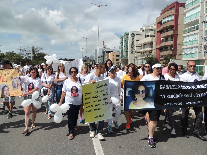 Durante a caminhada, os familiares e amigos da advogada Gabriela Silva, que foi assassinada no último dia 24 de agosto, andaram pela orla de Camburi com faixas e camisas com a foto da advogada. O pai de Gabriela, Pastor Reinaldo Maria de Araújo, afirmou que é preciso uma grande mudança de comportamento das pessoas. “Temos que evitar que essa violência aconteça com outras mulheres. Precisamos viver mais em harmonia e buscar a reflexão. Clamamos a paz, por mais que seja difícil. Essa manifestação é um gemido no silêncio em prol da paz de todos, começando por cada um”, desabafou.